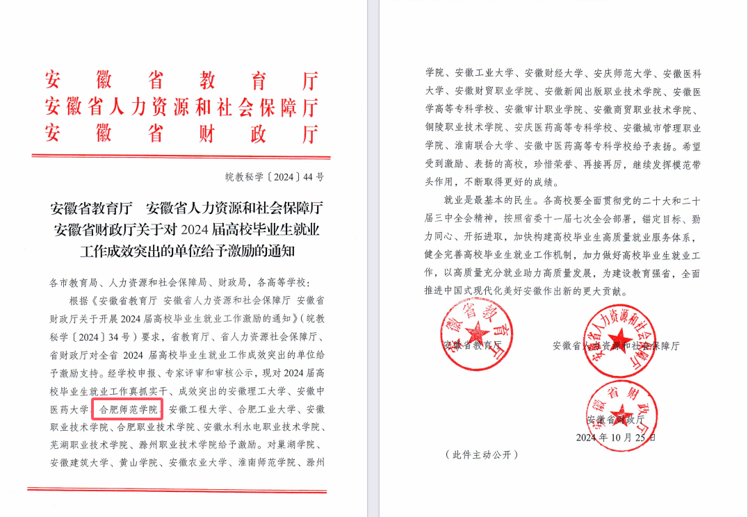 近日,安徽省教育厅、安徽省人力资源和社会保障厅、安徽省财政厅联合印发《关于对2024届高校毕业生就业...